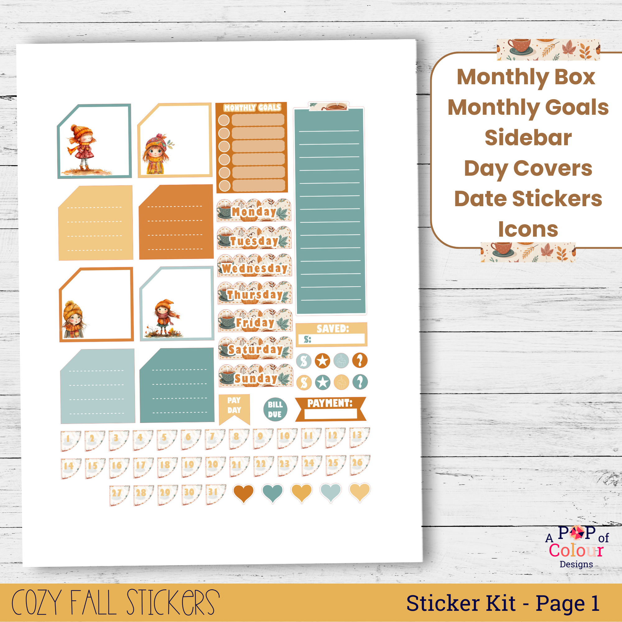 Imagine opening your planner to the monthly overview and feeling like you’ve stepped into a warm hug. This Cozy Fall monthly sticker kit was designed to help you slow down and plan your days with intention and creativity. With warm autumn tones, every sticker turns your monthly spread into a little act of self-care.