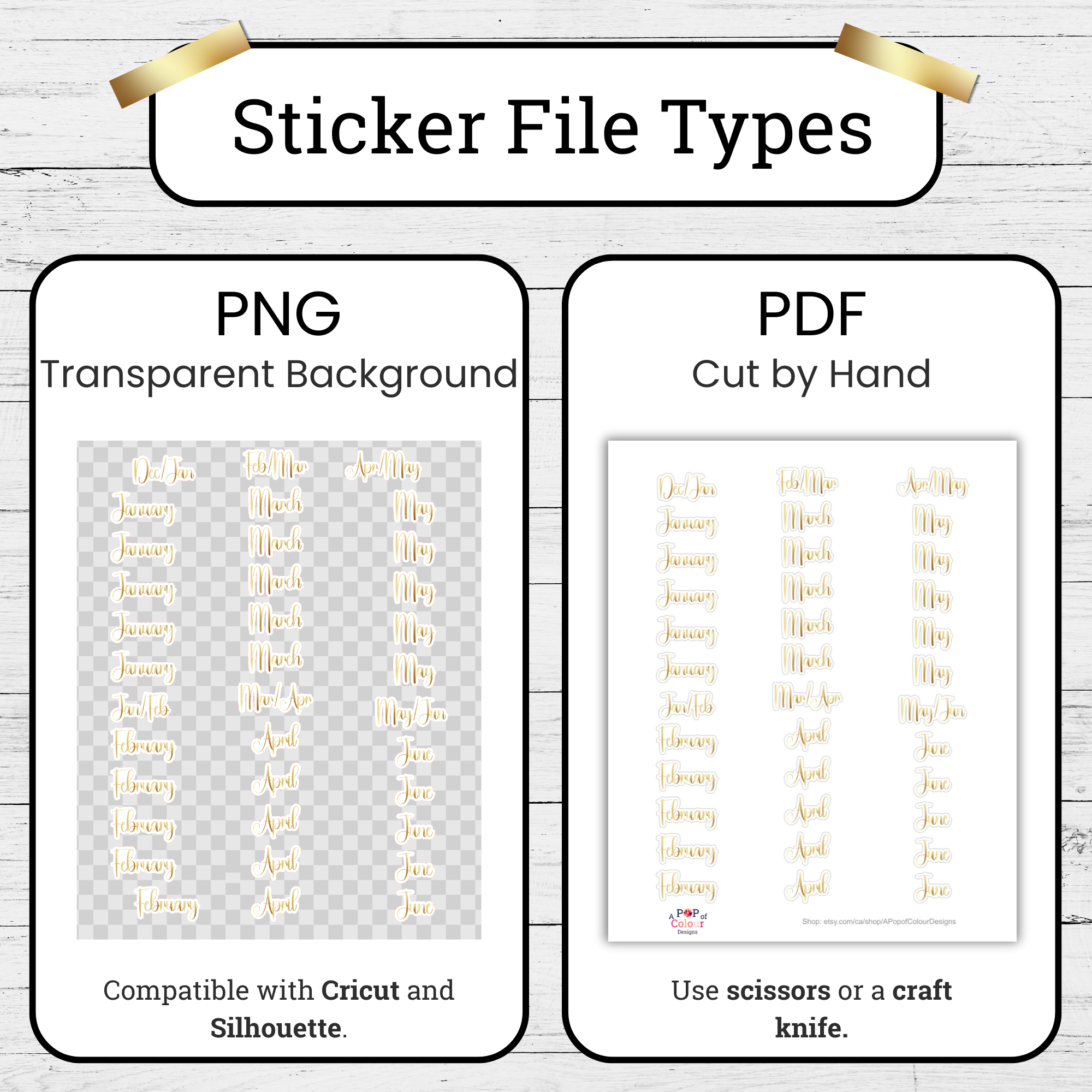 ✨ Two sticker sheets (8.5″ x 11″) that you can print and cut over and over again.