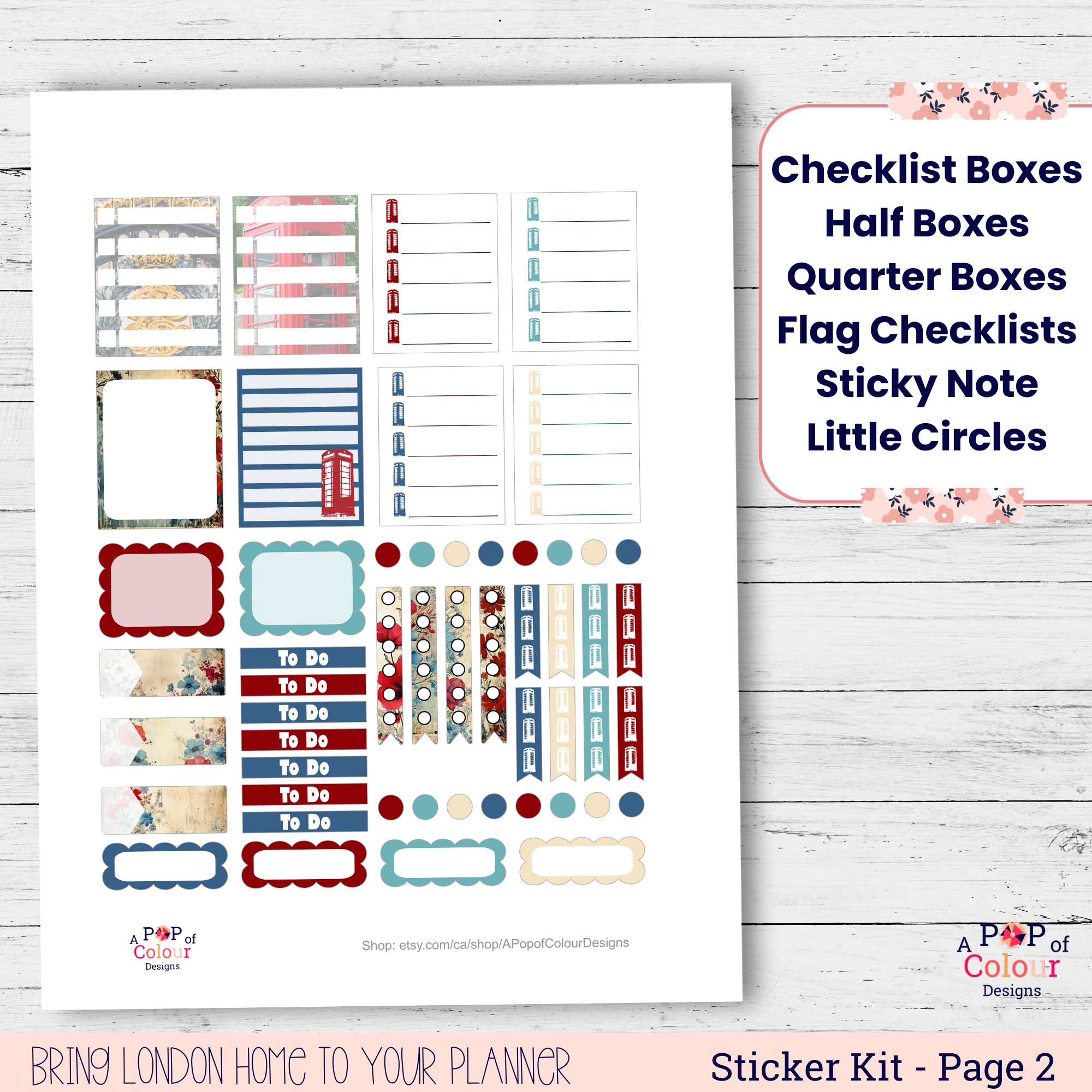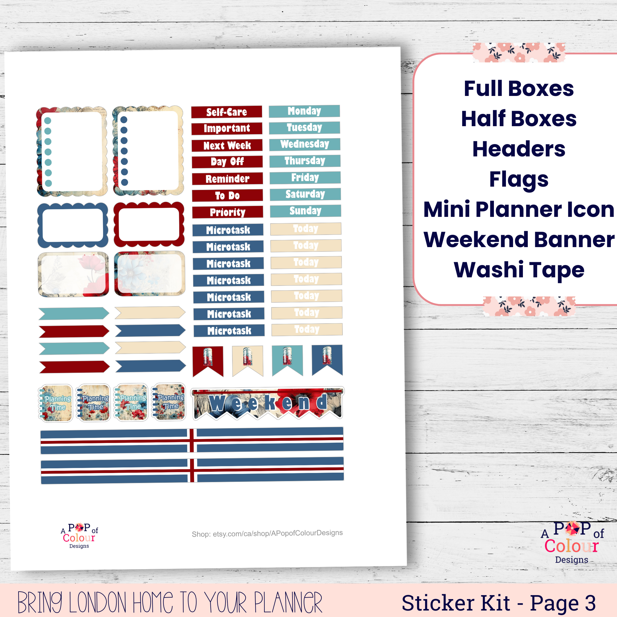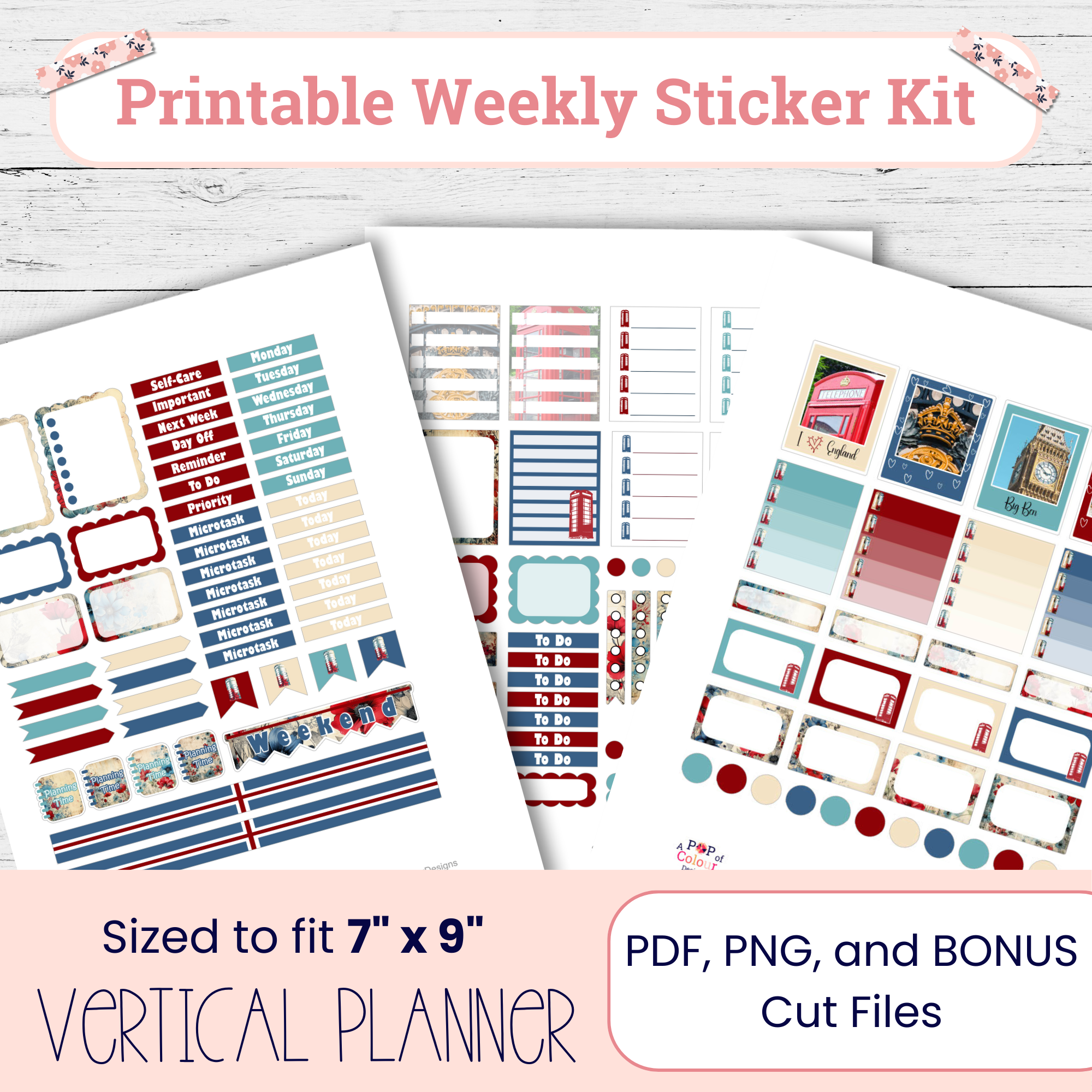 London Classics brings a timeless London feel to your weekly planning with bold colors and recognizable city imagery. This printable weekly planner sticker kit is designed for vertical planners and includes structured boxes, labels, and functional stickers for clean, cohesive weekly layouts.