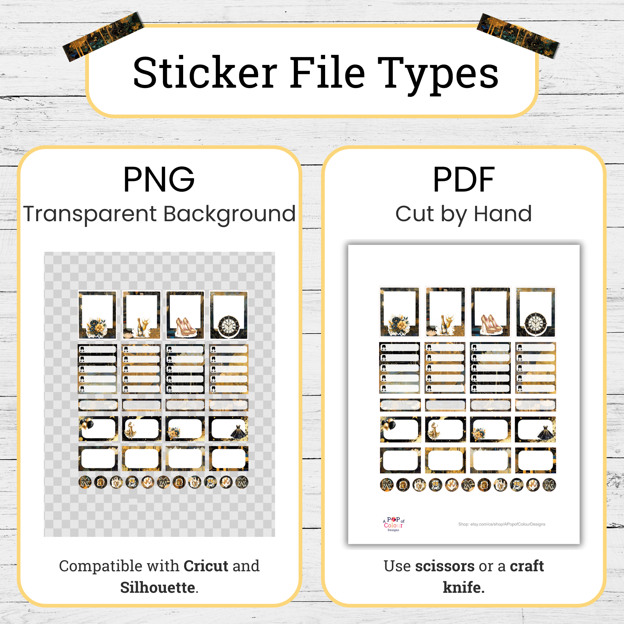 ✨ Four sticker sheets (8.5″ x 11″) that you can print and cut over and over again.