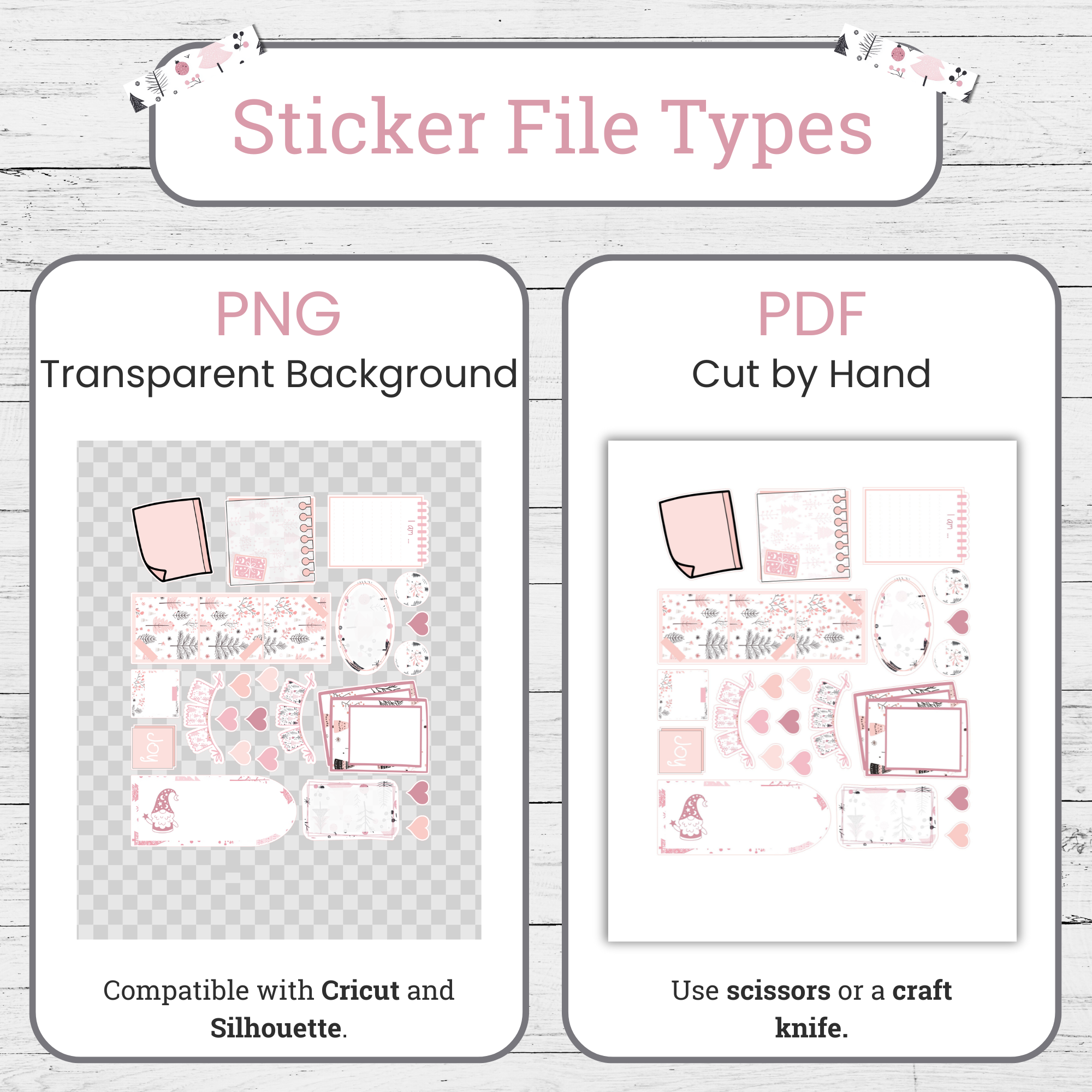 ✨ Two sticker sheets (8.5″ x 11″) that you can print and cut over and over again.