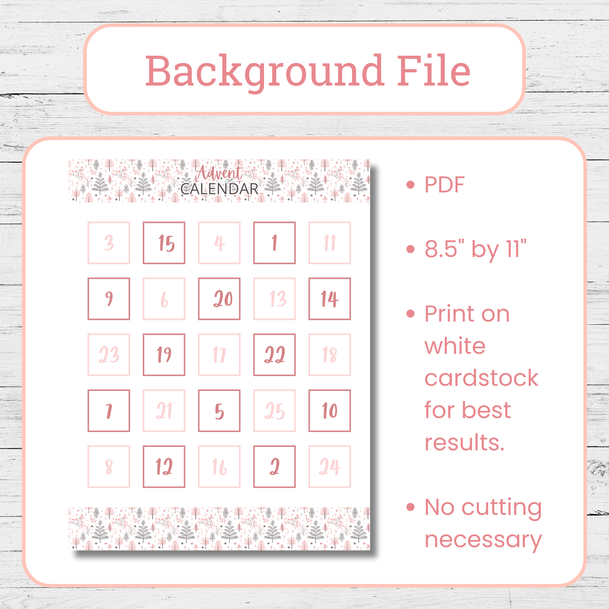 – 1 PDF with a coordinating pastel-themed advent calendar background