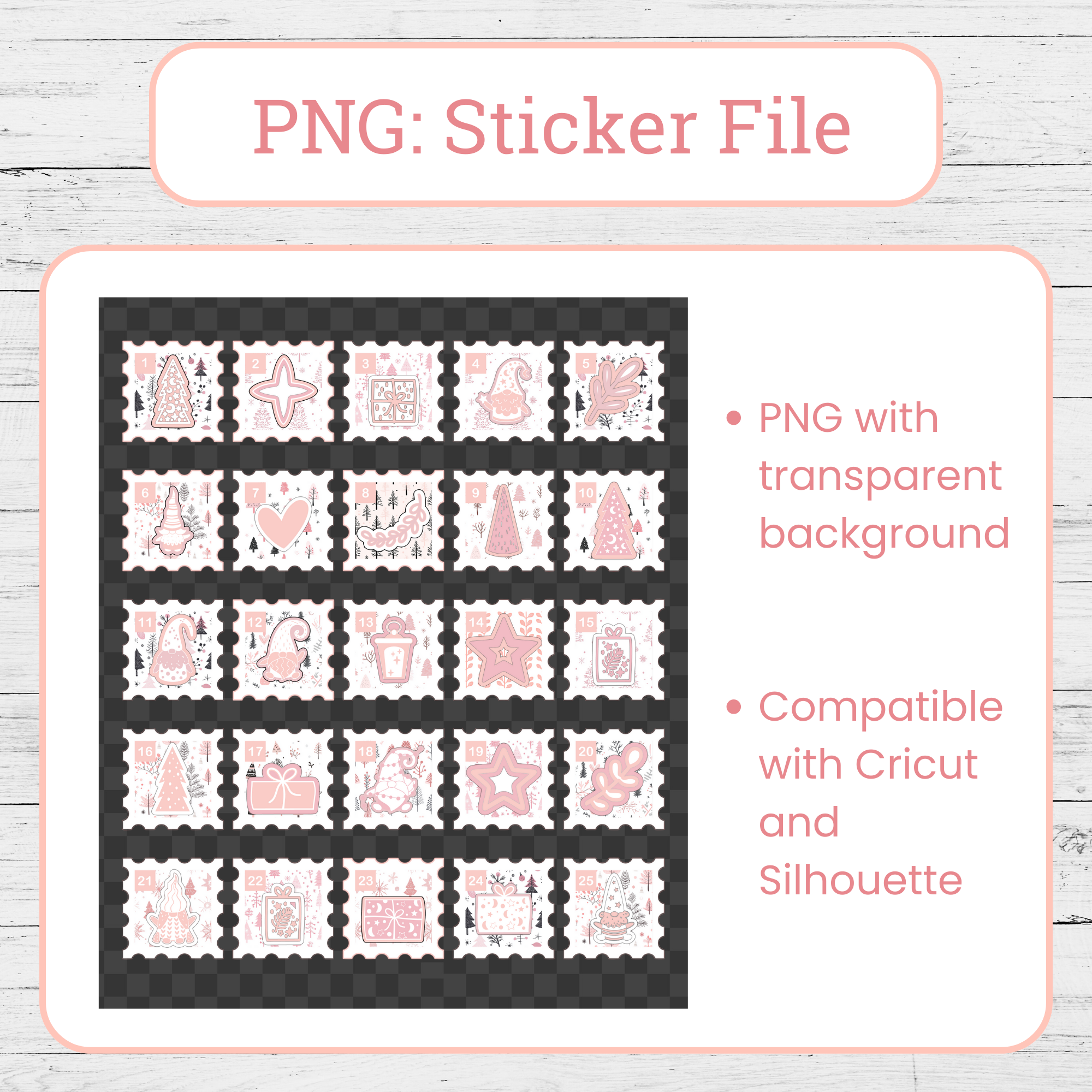 – Transparent PNG file of the countdown stickers ideal for Cricut and Silhouette