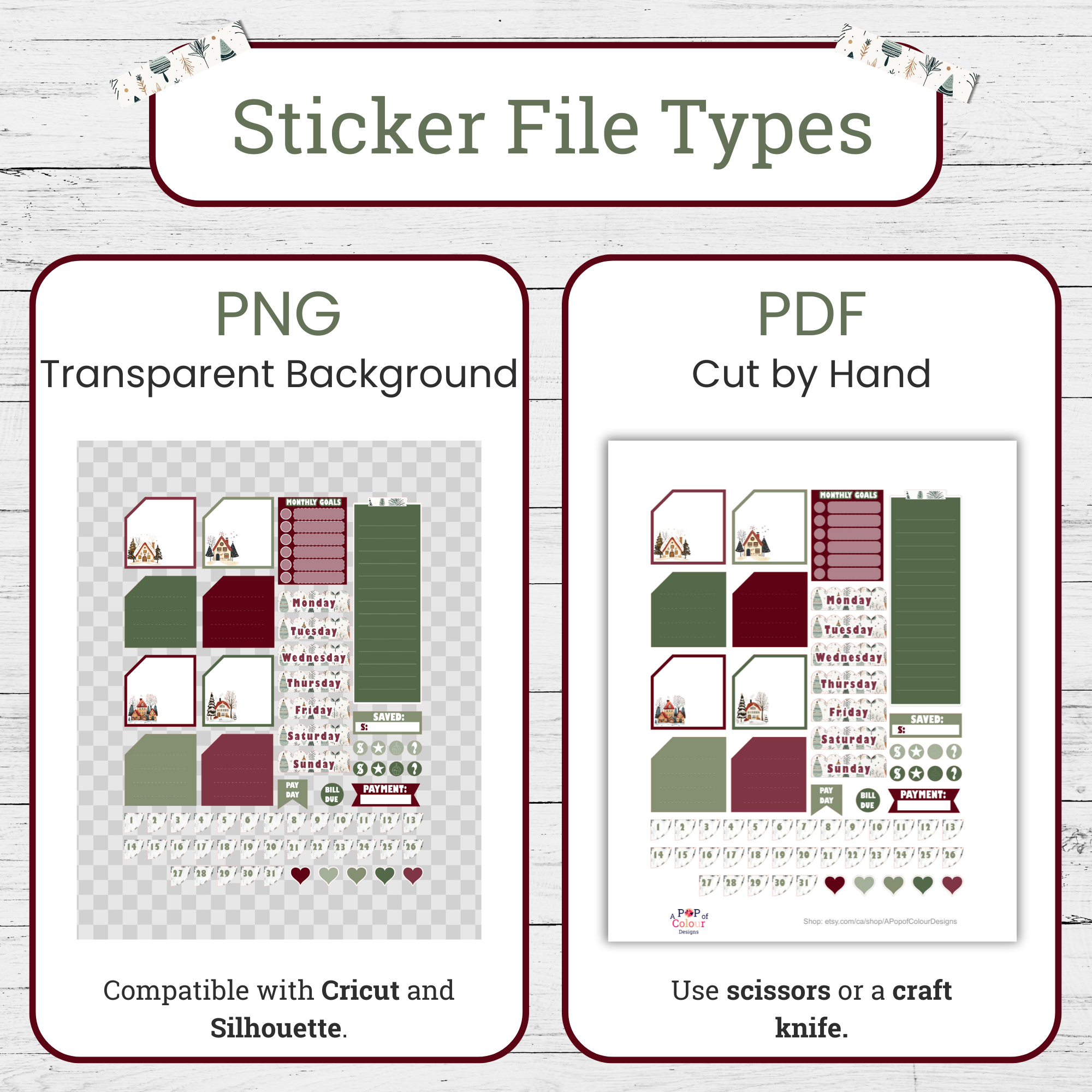 Make your month feel merry and bright with the Christmas Village Monthly Planner Stickers! Featuring cozy snowy village designs and classic Christmas colours, these printable stickers bring warmth and festive cheer to your vertical planner all season long.